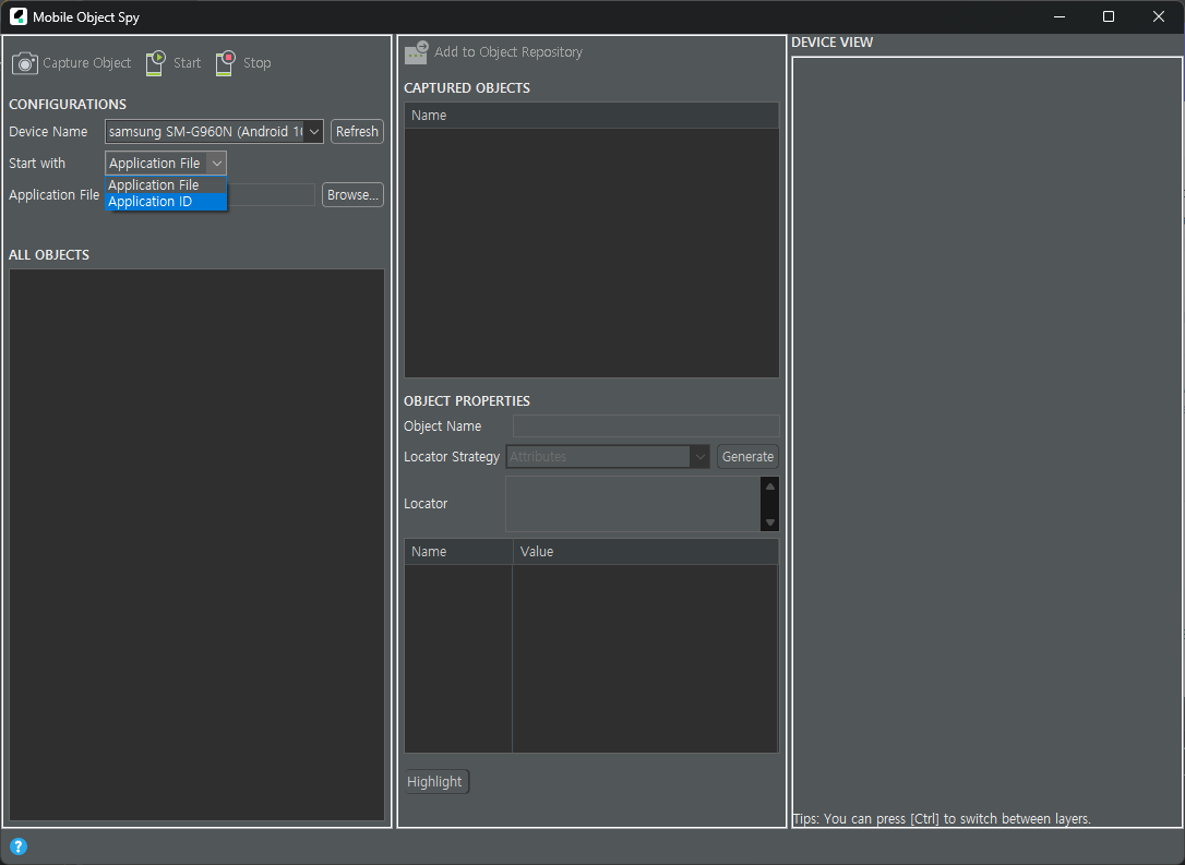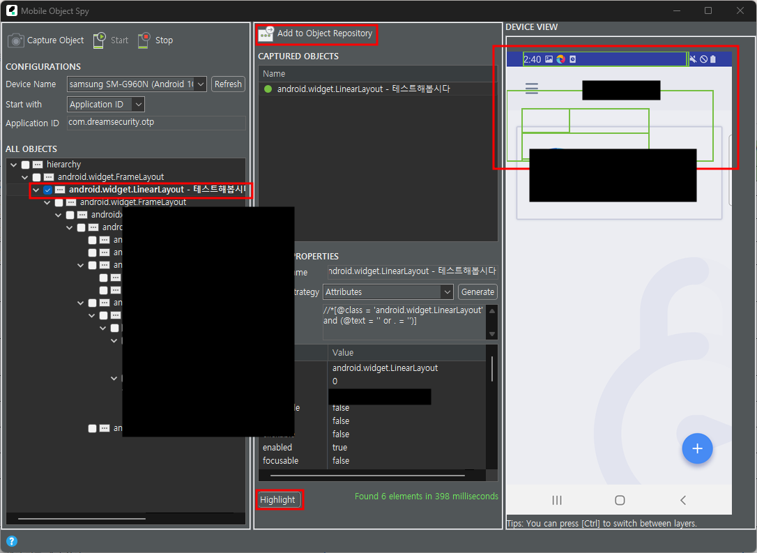 Object Spy - 테스트 앱 내부의 특정 UI 객체를 Object Repository에 저장