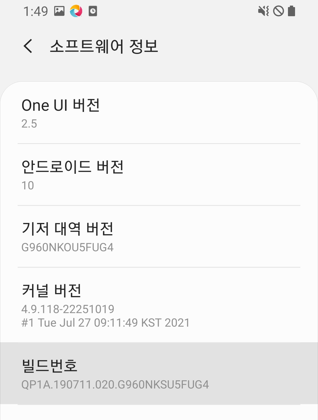 설정 → 휴대전화 정보 → 소프트웨어 정보 → 빌드번호 7번 터치