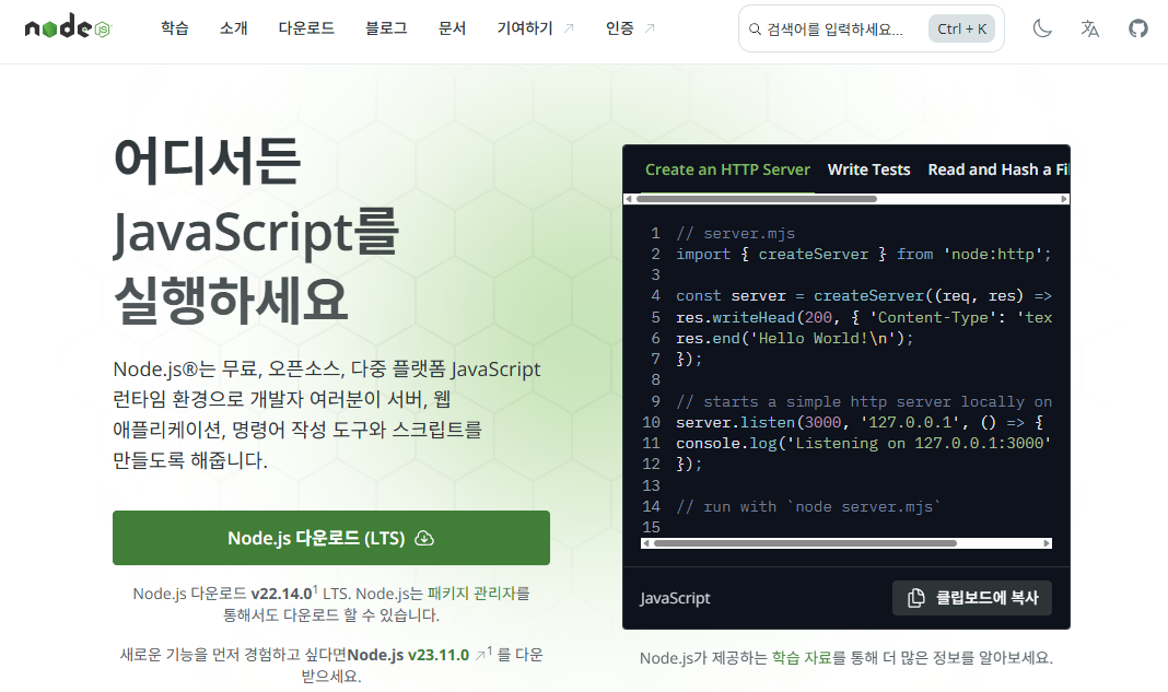 Node.js는 자바스크립트를 브라우저 외에서도 실행 가능하게 해주는 런타임 환경입니다.