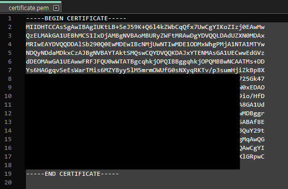 Base64로 인코딩된 인증서에 헤더(BEGIN)와 푸터(END)가 포함된 텍스트 형식