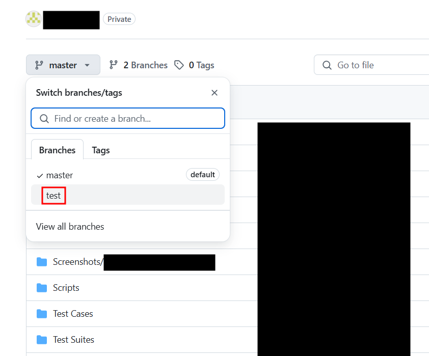 4. Git bash로 프로젝트 내 test 브랜치 생성